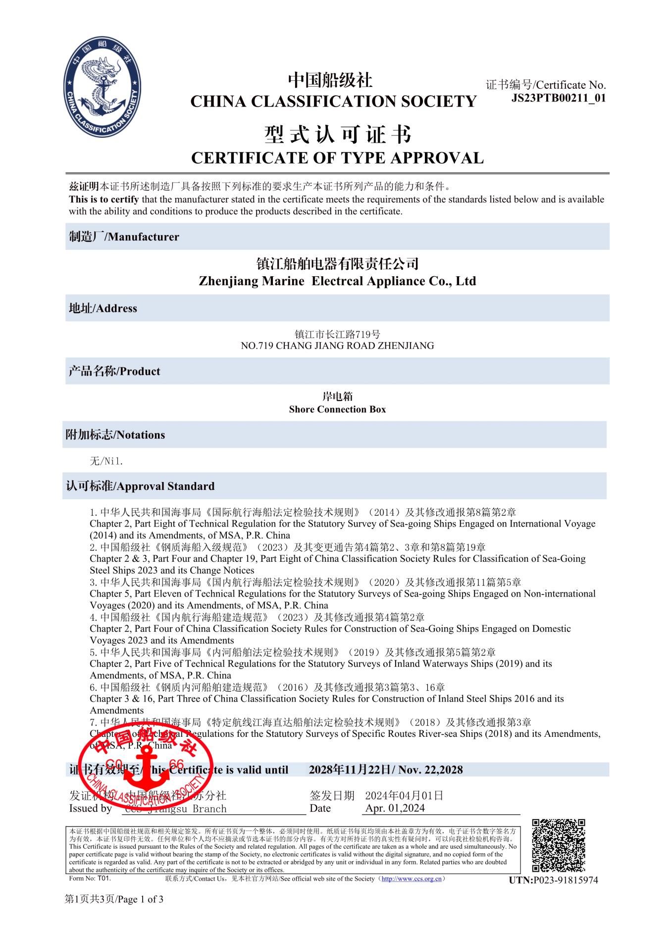 岸電箱型式認可證書